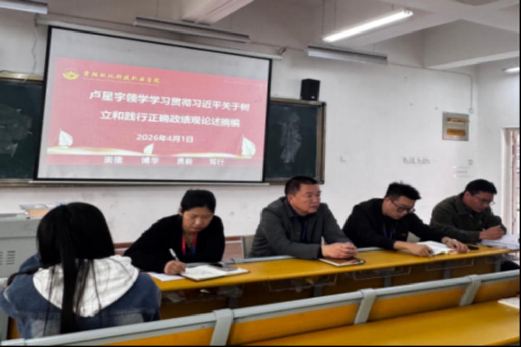 会上,学院党总支书记卢星宇领学《习近平关于树立和践行正确政绩观论述摘编》核心要义,重点阐释“功成不必在我,功成必定有我”的实干精神,深入剖析“新办法不会用、老办法不管用、硬办法不敢用、软办法不顶用”的能力短板。结合科学决策、民主决策、依法决策及力戒形式主义、官僚主义等要求,引导全体教职工深刻认识:正确政绩观的核心是为民造福,对高校而言,就是以“培养高素质技术技能人才、服务地方产业发展”为根本目标,坚决杜绝“重形式轻实效、重短期轻长远”的倾向 。